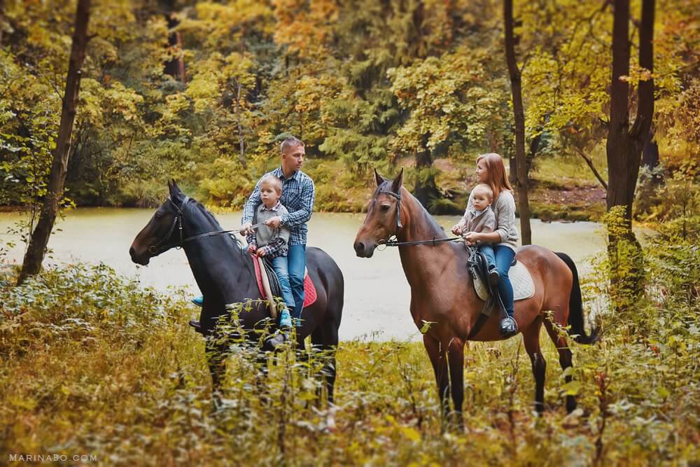 Семейная конная прогулка на 1 час, 2 взрослых и 2 ребенка - 1 час